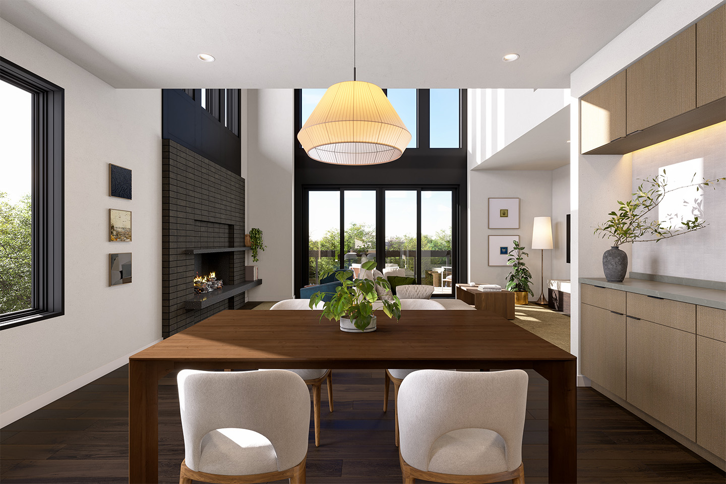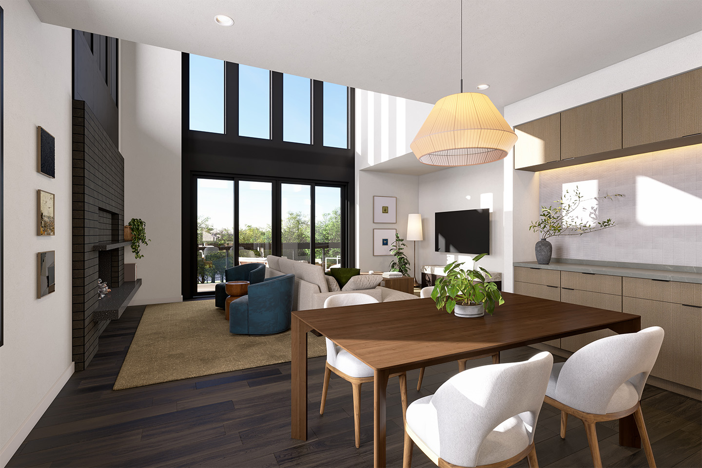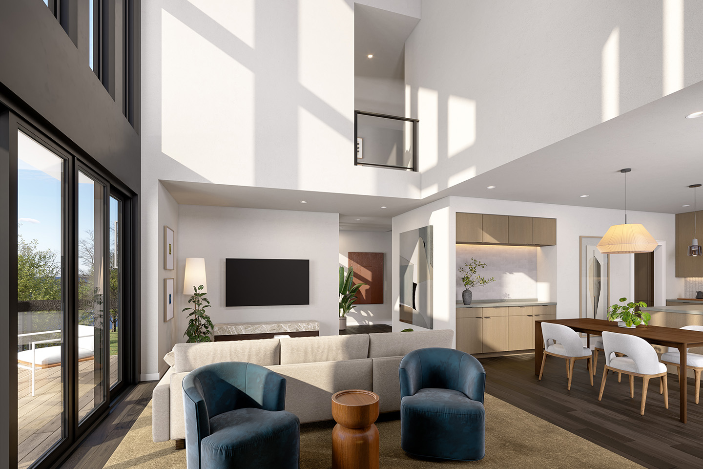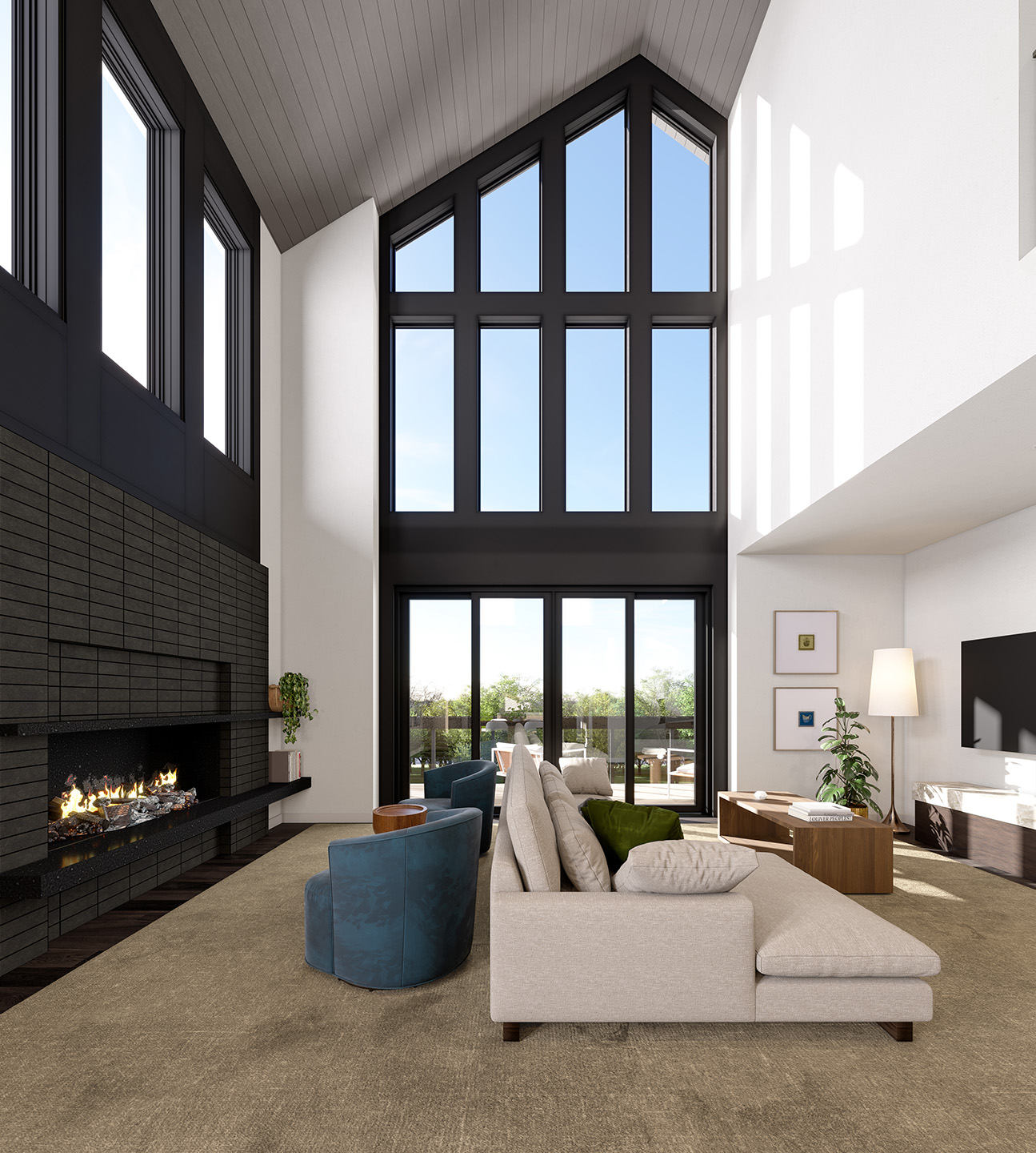 This three-story residence reflects The Summit’s commitment to building with the land, not over it. With tiered balconies, large windows, and a compact footprint, the home maximizes views and natural light while maintaining a quiet presence along the ridge.